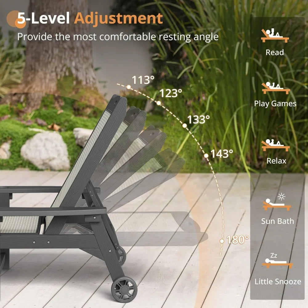 - Five backrest heights provide tailored support for lounging, reading, or sunbathing, while a quick, tool-free assembly completes in under 25 minutes.