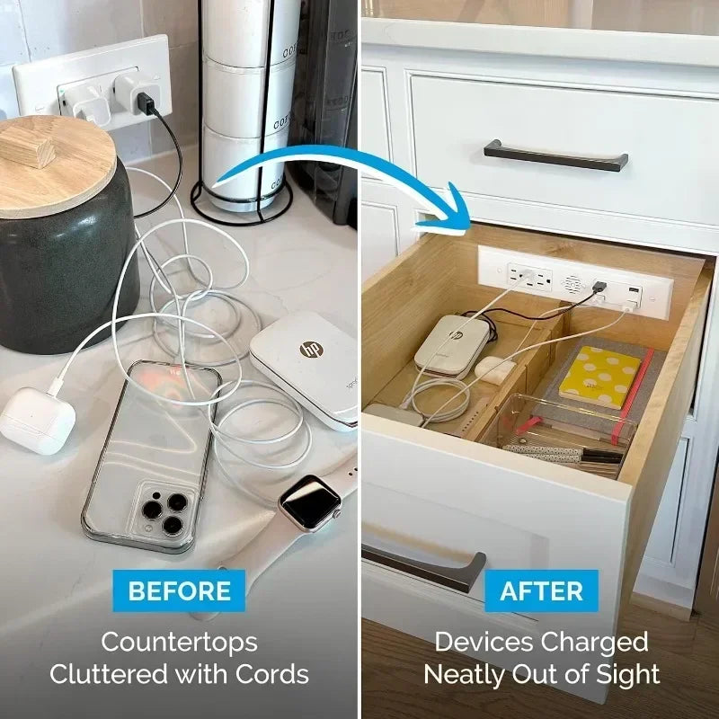 Transform desk clutter into a clean, organized workspace with Blade Duo Drawer Outlet—your hidden power hub with safety and speed.