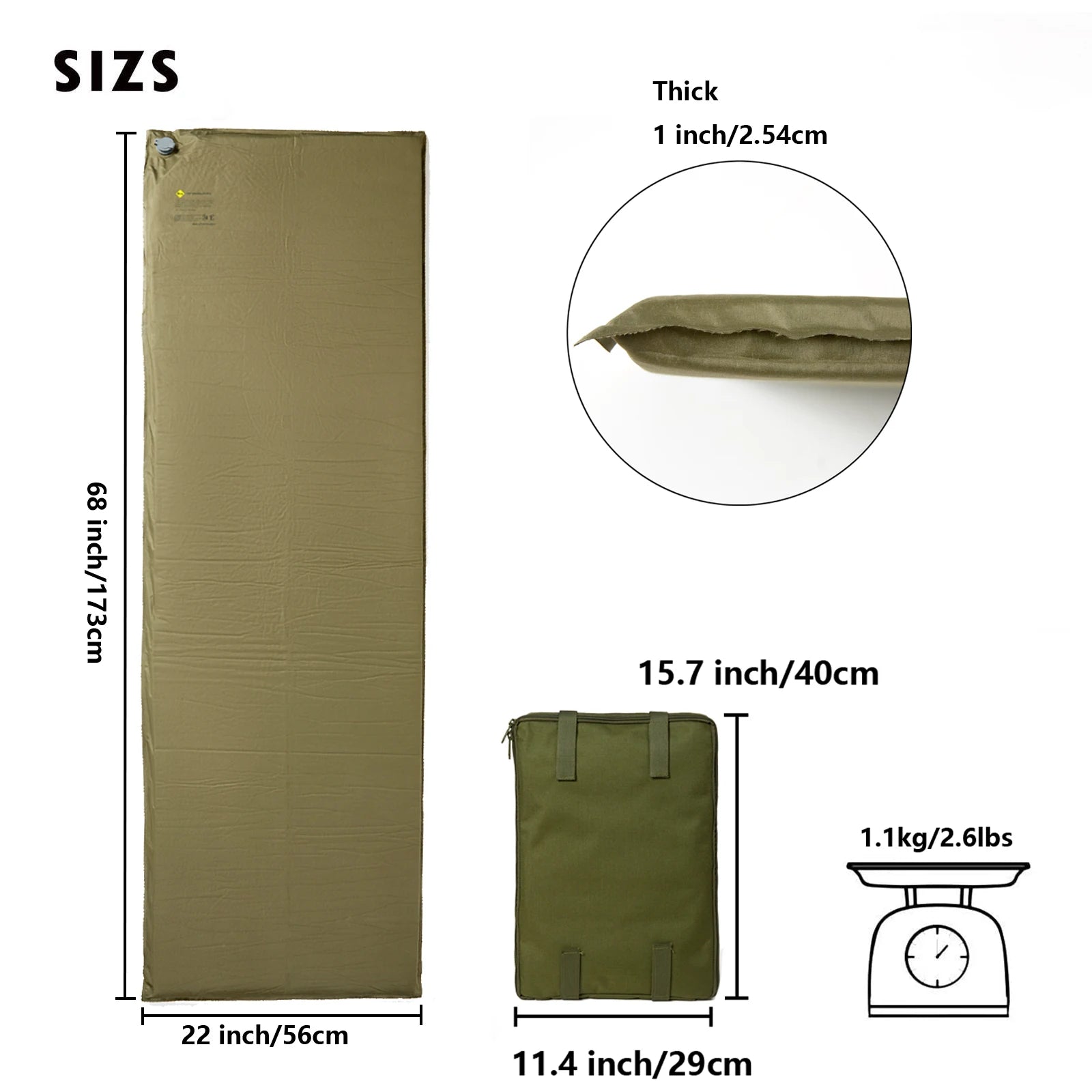 - A roomy 220 cm x 80 cm x 2.54 cm size gives you generous sleeping space and reliable insulation for cool nights.