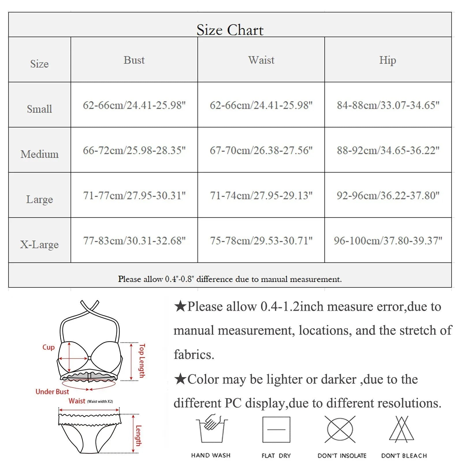 | Size | Bust | Waist | Hip |