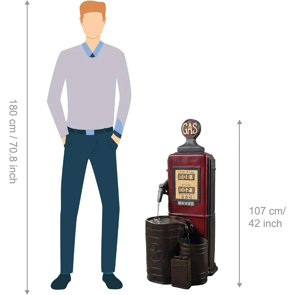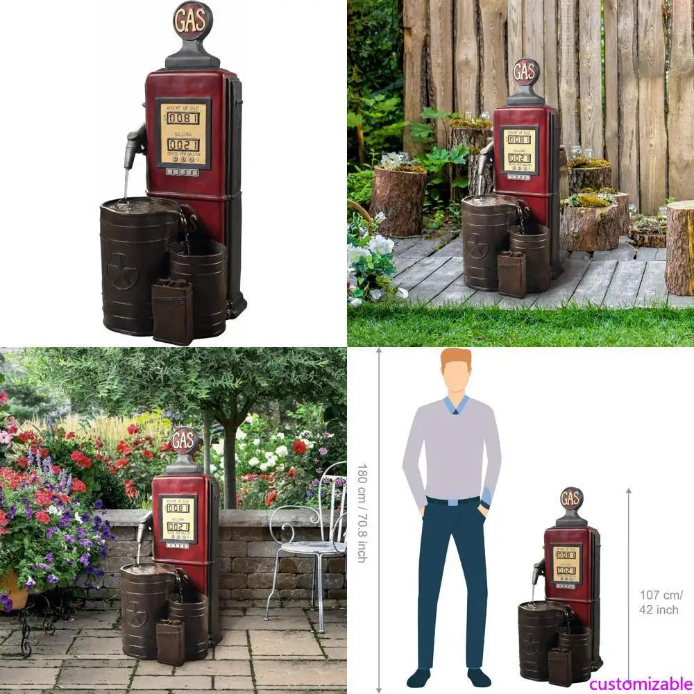 - Three-tier design with a classic gas-pump and barrels creates a captivating focal point for your yard, inviting admiring glances.